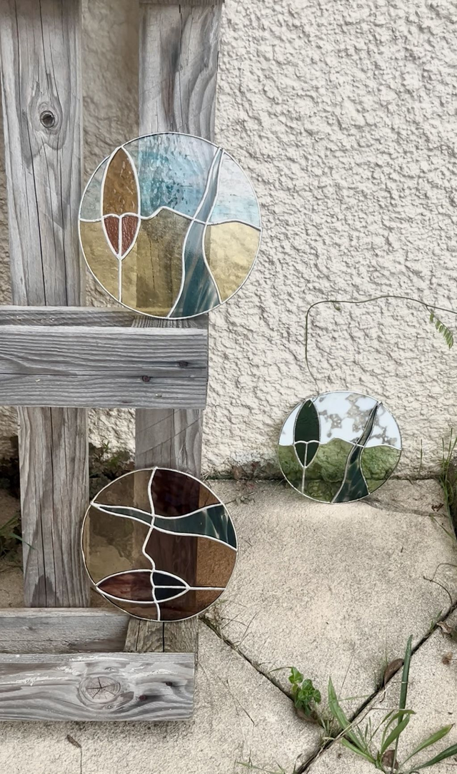 Vitrail réalisé selon la méthode Tiffany, les pièces de verres sont soudées avec un alliage sans plomb (étain-cuivre)