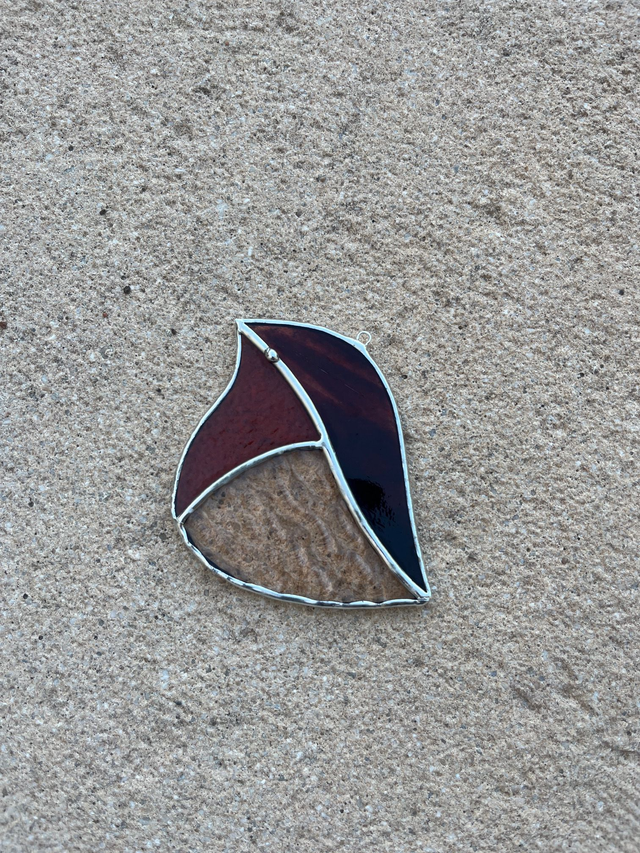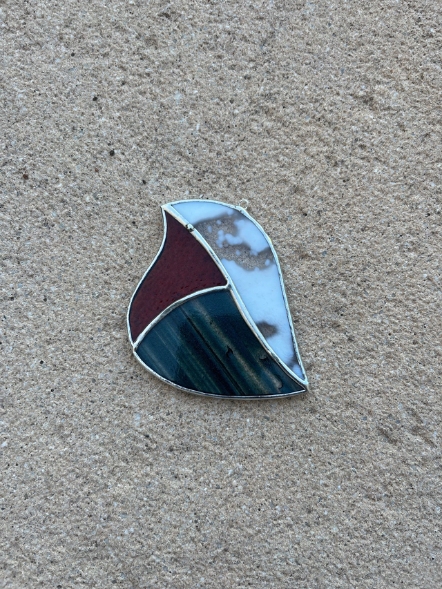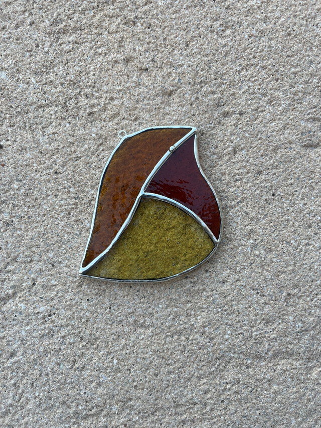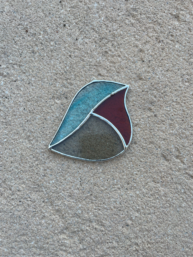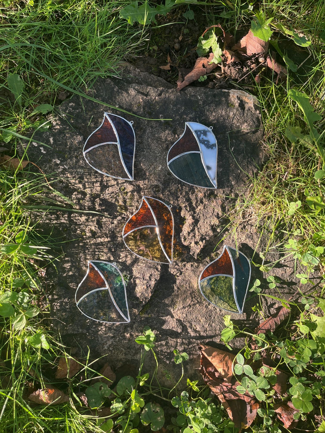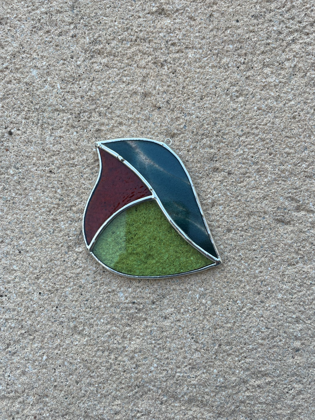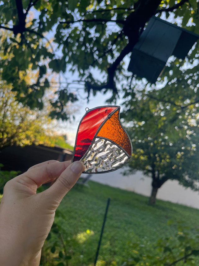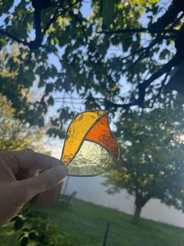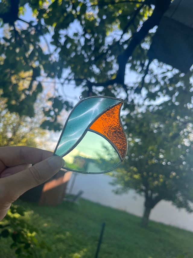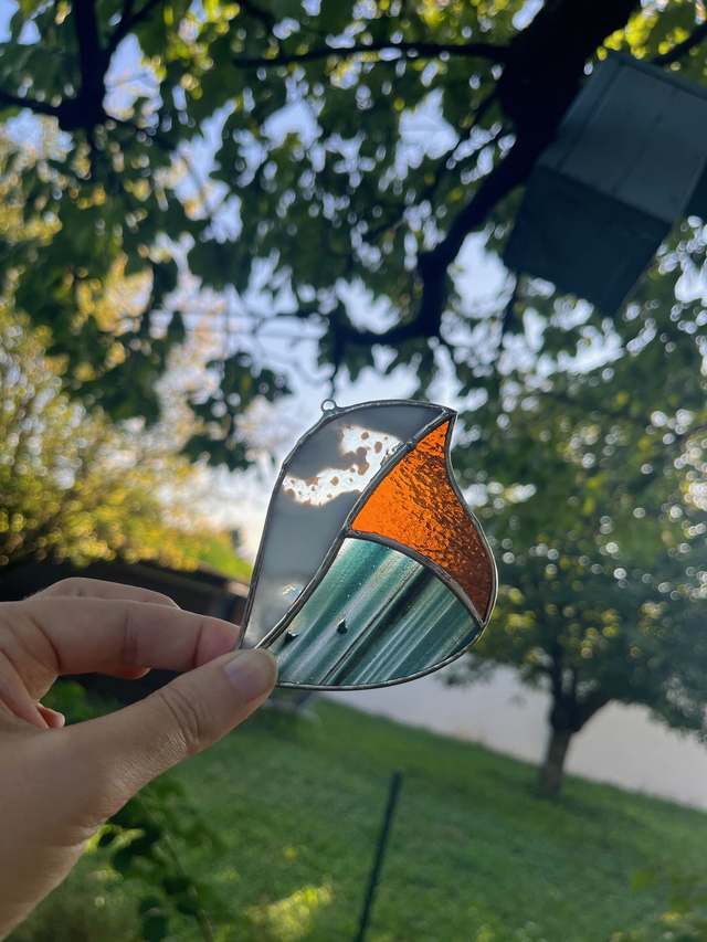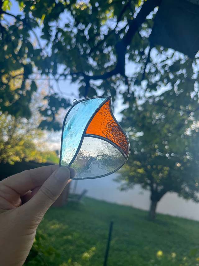 Vitrail réalisé selon la méthode Tiffany, les pièces de verres sont soudées avec un alliage sans plomb (étain-cuivre)